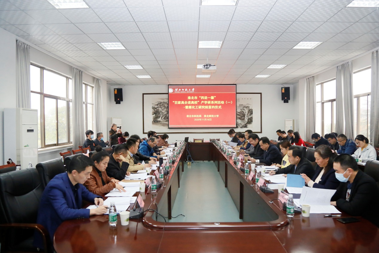 为深入贯彻落实党的十九大精神和习近平总书记考察安徽重要讲话精神,加强市校科技合作、资源融合,2020年11月18日,由永利集团3044官网欢迎您和淮北市共同开展的“百家高企进高校”产学研对接会首场暨煤化工研究院签约仪式在永利官网举行。