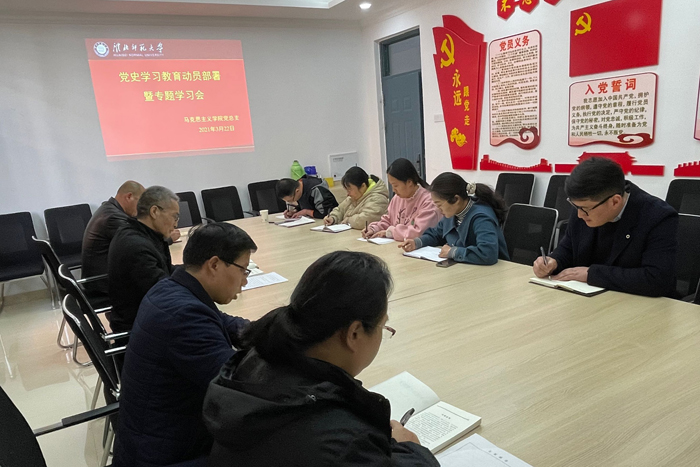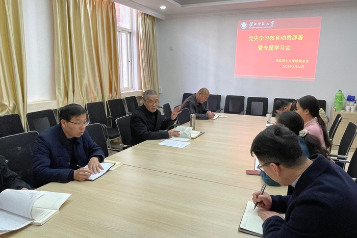2021年3月22日下午,马克思主义学院党总支在滨湖校区特教楼A102党员活动室召开党史学习教育动员部署暨专题学习会。马克思主义学院党总支委员、处科级干部、教工党支部书记、专职辅导员及坐班人员参加会议。